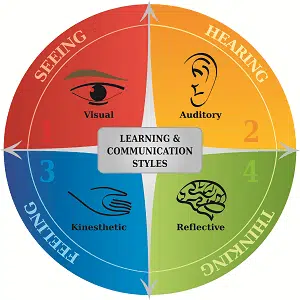 ‘Learning styles’ is a concept which attempts to describe the methods by which people gain information about their environment. People can learn through seeing (visually), hearing (auditorily), and/or through touching or manipulating an object (kinesthetically or ‘hands-on’ learning). For example, looking at a picture book or reading a textbook involves learning through vision; listening to a lecture live or on tape involves learning through hearing; and pressing buttons to determine how to operate a VCR involves learning kinesthetically.